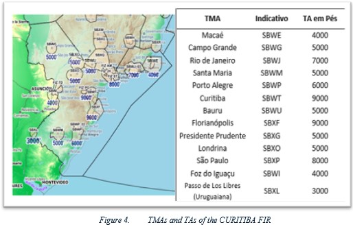 At the Curitiba FIR, TAs of 3000', 4000', 5000', 6000', 7000', 8000' and 9000' are used. Figure 4 shows the 13 (thirteen) TMAs of this FIR with their respective TAs.