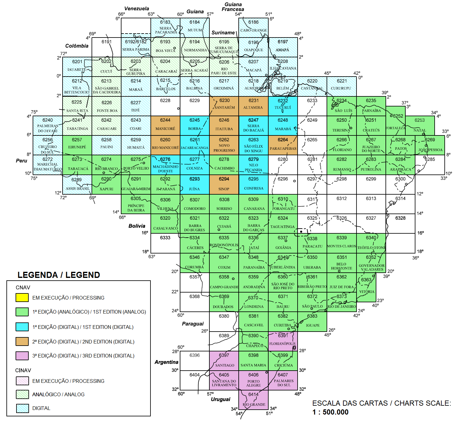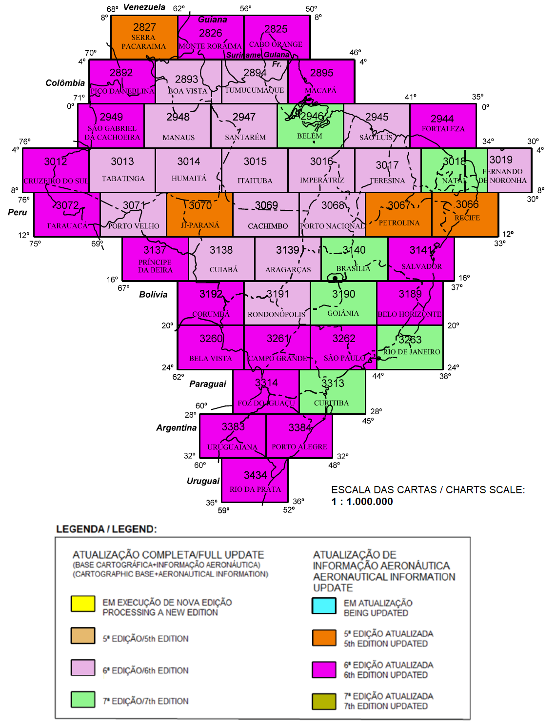 1.3. The aeronautical charts cover the airspace above the Brazilian territory, including territorial and jurisdictional waters. In addition to these limits, they also cover other spaces that have been subject of international air navigation agreements. At AISWEB, appropriate charts may be obtained for flight planning purposes.